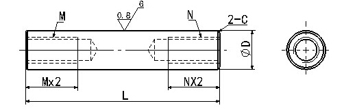 !全長L必須滿足Mx2+Nx2≤L.  !Mx2.5+4+Nx2.5+4≥L時,螺紋底孔可能會貫通。另外,較大直徑的螺紋孔有效長度為優先。此時L須滿足L≥Mx2.5+4+N或者L≥Nx2.5+4+M