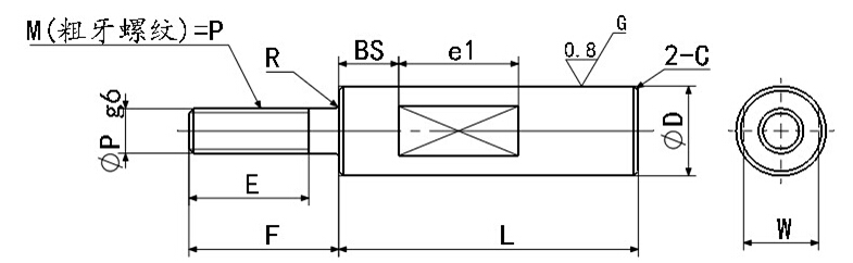 導向軸一端外螺紋型帶扳手槽型 類別:導向軸