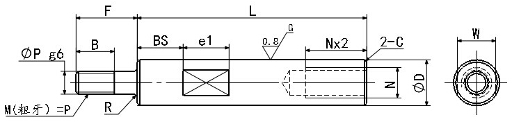 | Type | D(g6) | L指定單位1mm | M(粗牙) | N(粗牙) | 扳手槽尺寸 | R | C |