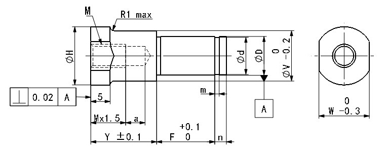 Y≥17時,扳手槽為15,Y<17時,扳手槽銑穿 ! W<E時,兩平面寬度W將擴展到直徑E的部位
